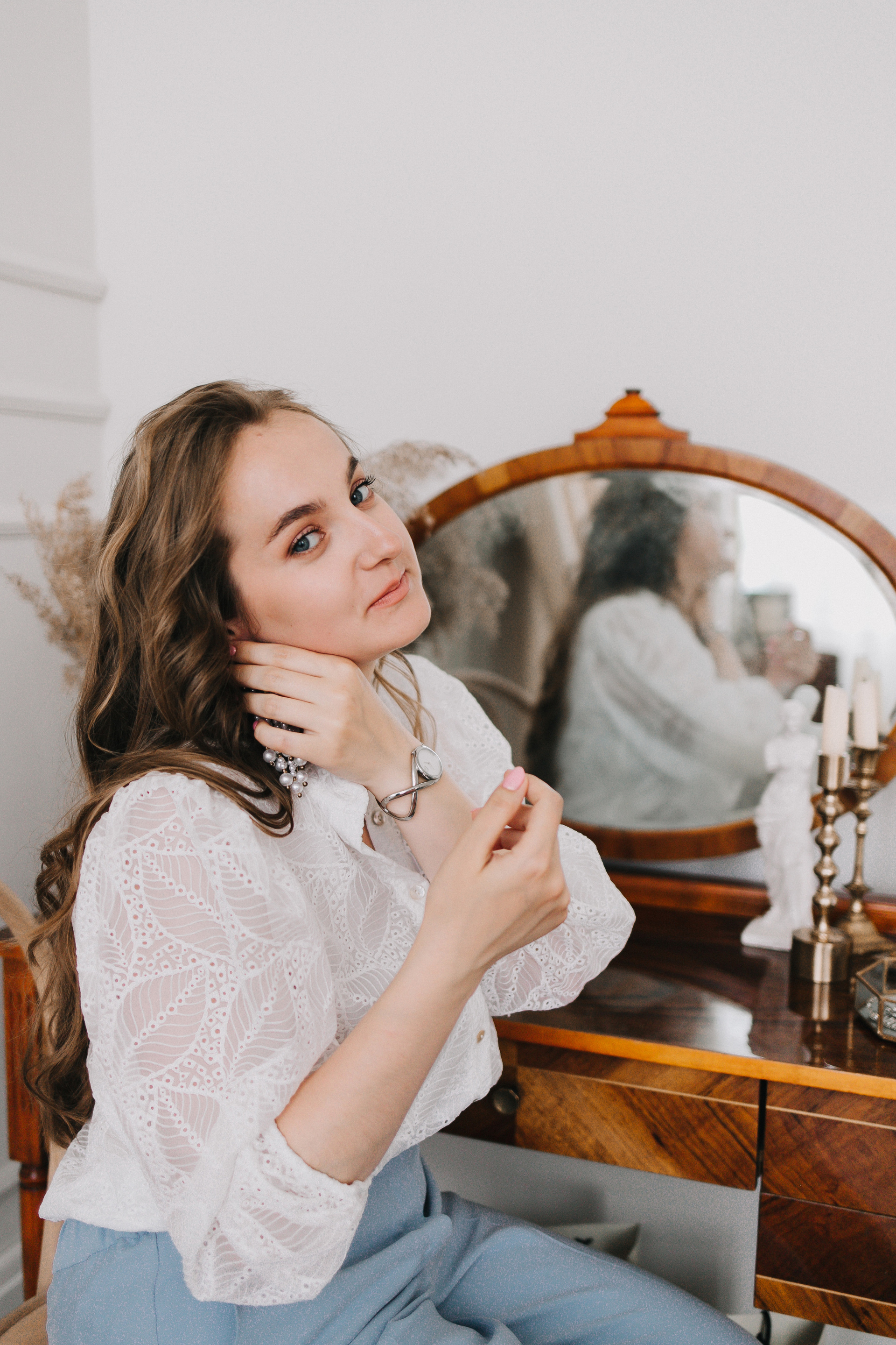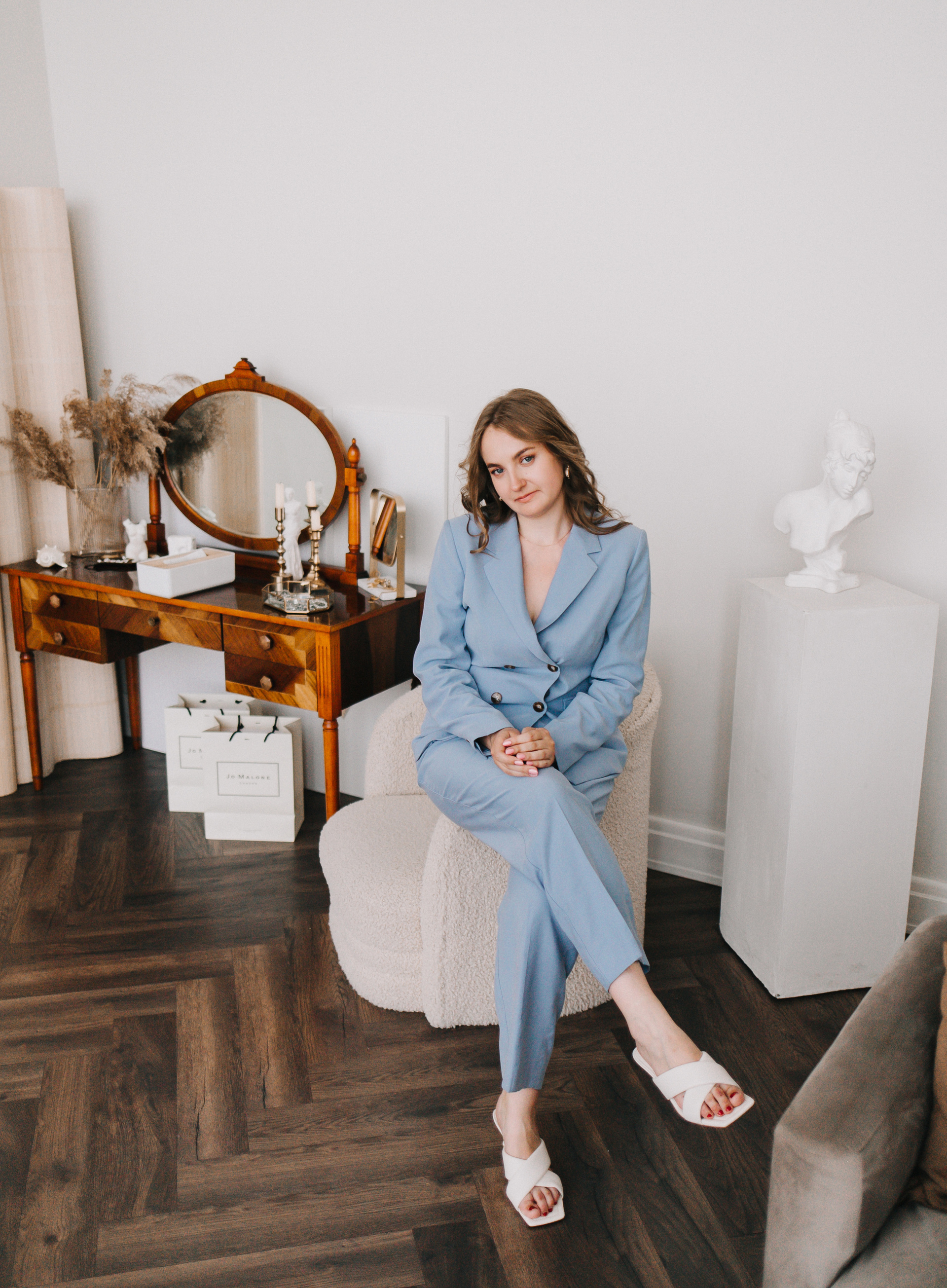 За 55 минут мы отсняли четыре образа, всё благодаря чёткой подготовке эксперта по визуалу. За несколько дней до съёмки я получила ссылку на диск с референсами для всех четырех нарядов и описанием необходимых деталей. Клиентка выбрала пакет «Mini» и получила 196 фото с небольшими светотеневыми правками для своего блога (нажмите на эту фразу, если хотите узнать подробности).