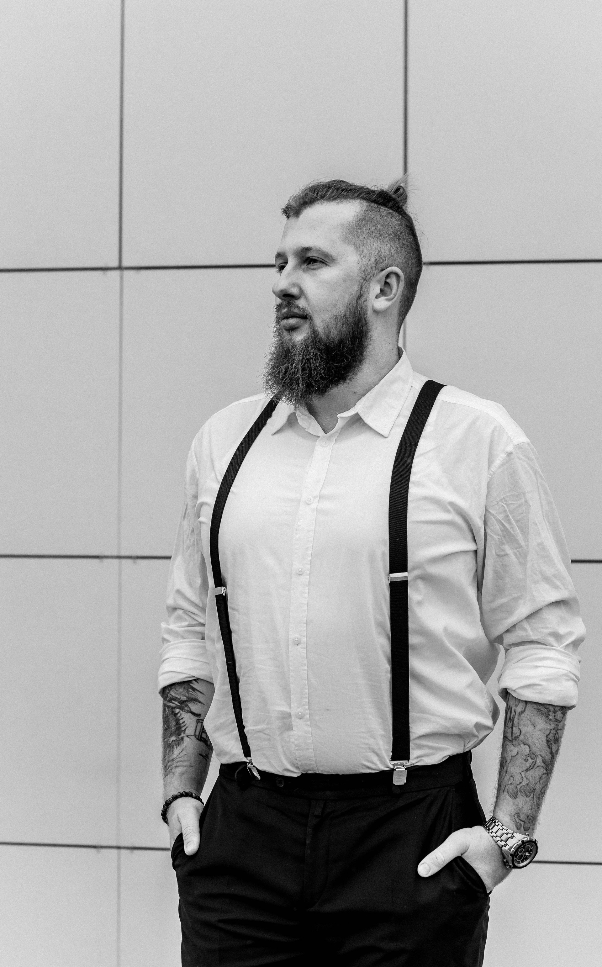 Мы сделали эти портреты для Жени на свадебной прогулке. Жесткий свет дополняет его мужественную внешность и подчеркивает брутальность.